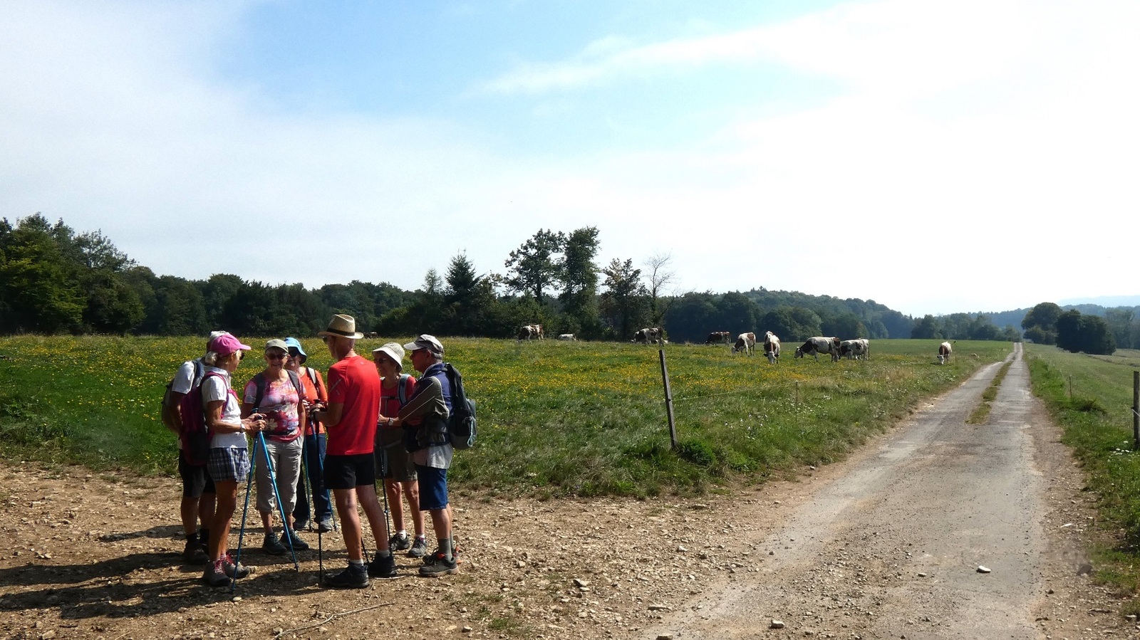 Rando organisée par Christophe en remplacement de Christian. Distance 8 km. Départ au monument du Lomont, arrivée à l'église de Chamesol.