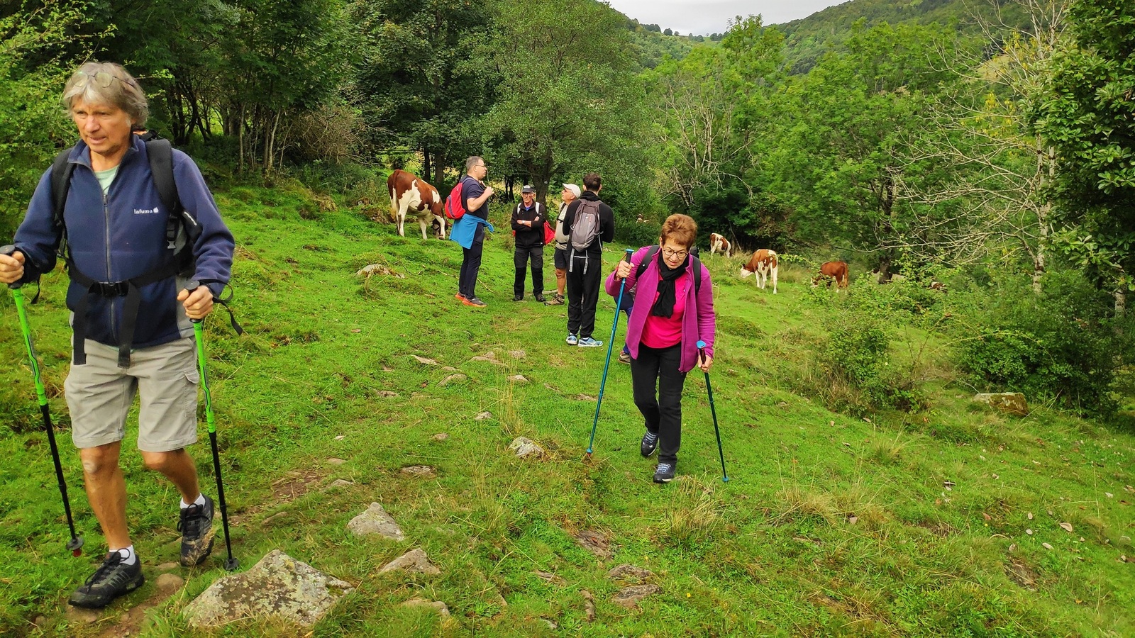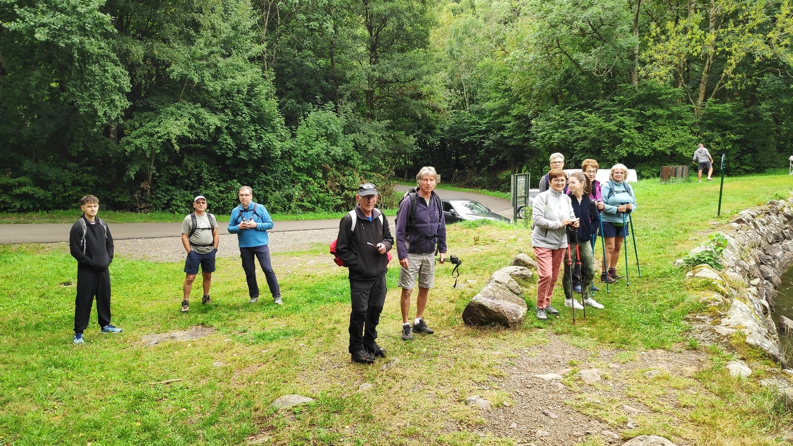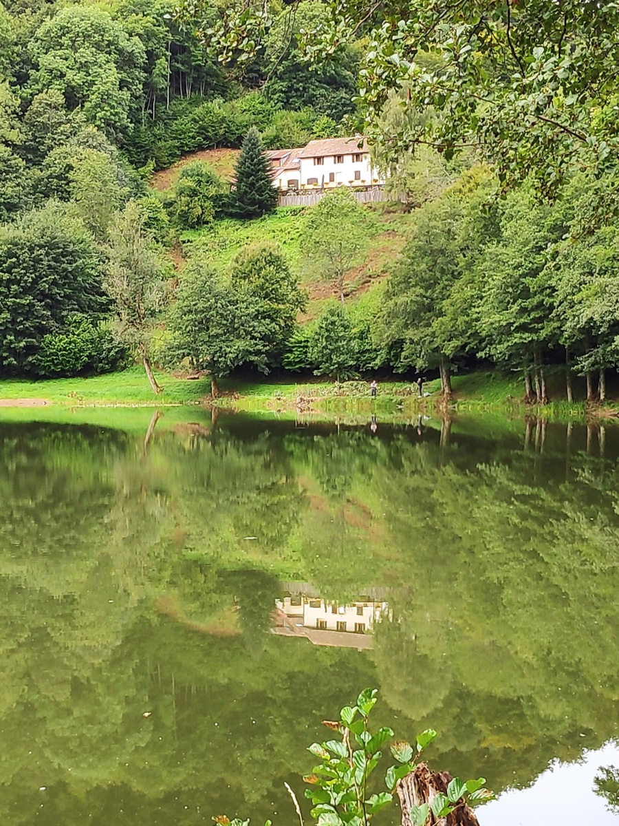 Randonnée organisée par Claude, distance 7,5 km. Départ à l'étang du Lachtelweiher, détour par la ferme-auberge du Bruckenwald.